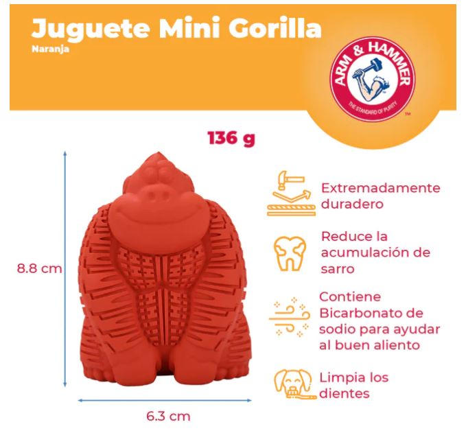 Arm & Hammer - Juguete para Perro Mini, Gorilla, Limpia Dientes y Reduce Sarro, Ultra resistente, 1pza